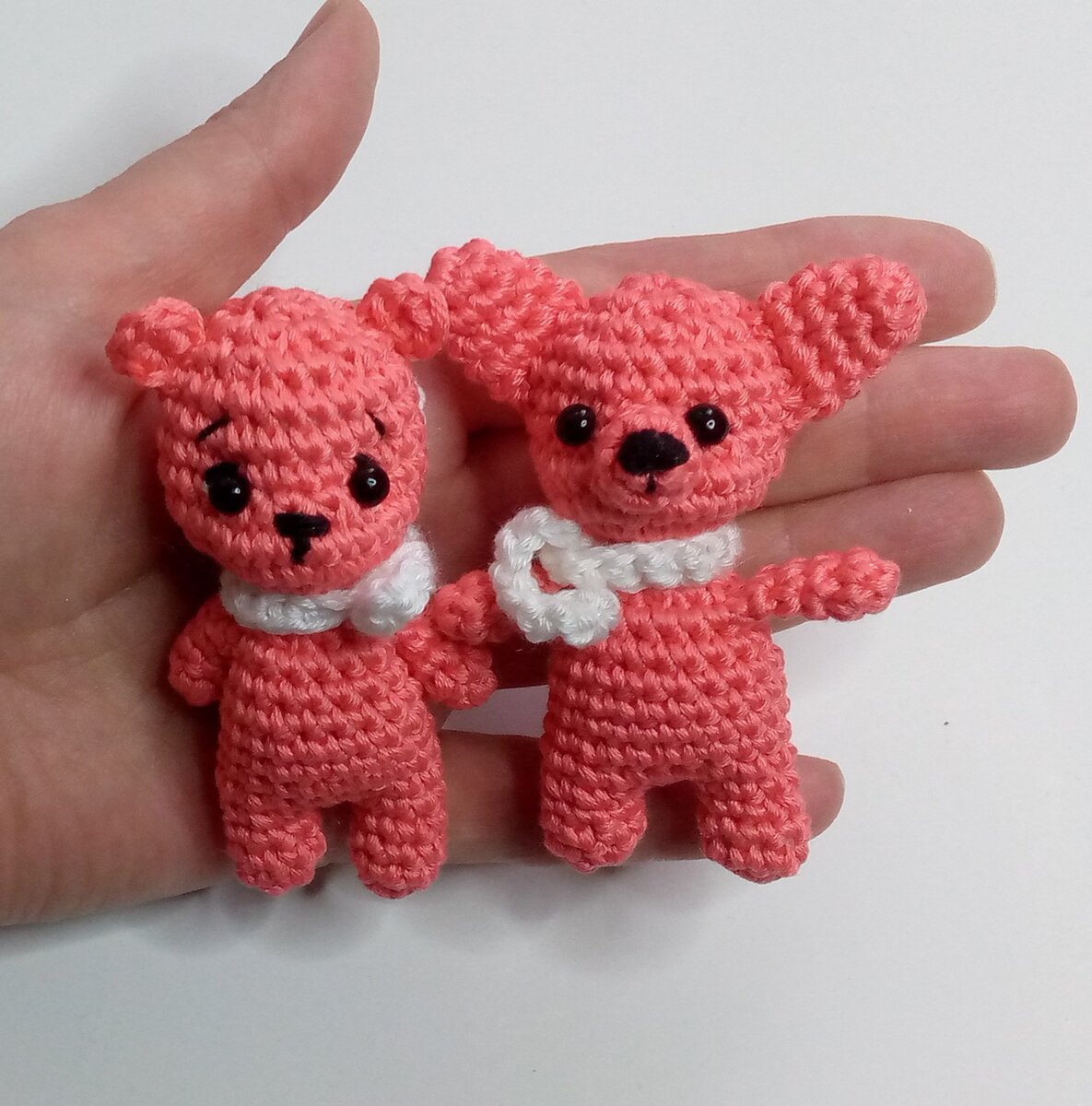 Всем привет! Продолжаю вязать маленькие игрушечки, т.к. для себя решила извязывать имеющююся пряжу и не заморачиваться пока покупкой новой (но кто знает, кто знает...))) И теперь это медвежонок и лисичка. Связаны из пряжи Ландыш № 1390 Троицкой камвольной фабрики. Я уже использовала эту ниточку в вязании гусёнка. Но не первый раз уже убеждаюсь, что для вязания небольших и маленьких игрушек нужно использовать пряжу потоньше. Да, это больше рядов, больше петелек и, соответственно, дороже игрушка, но вот эта чрезмерная, я бы сказала, "пиксельность" была бы намного меньше при использовании тоненькой пряжи, что очень приятно для глаза, и в целом игрушка выглядела бы достойнее. Но в тоже время, если вязать из толстой, но пушистой пряжи, тогда это вполне неплохо, тогда рельефность сглаживается. И кстати, медвежонок, по схеме которого я вязала своего, как-раз связан из плюшевой пряжи. Видимо, не зра автор выбрал именно её) (ссылка на видео https://www.youtube.com/watch?v=8wCpEDdOsAo&t=570s