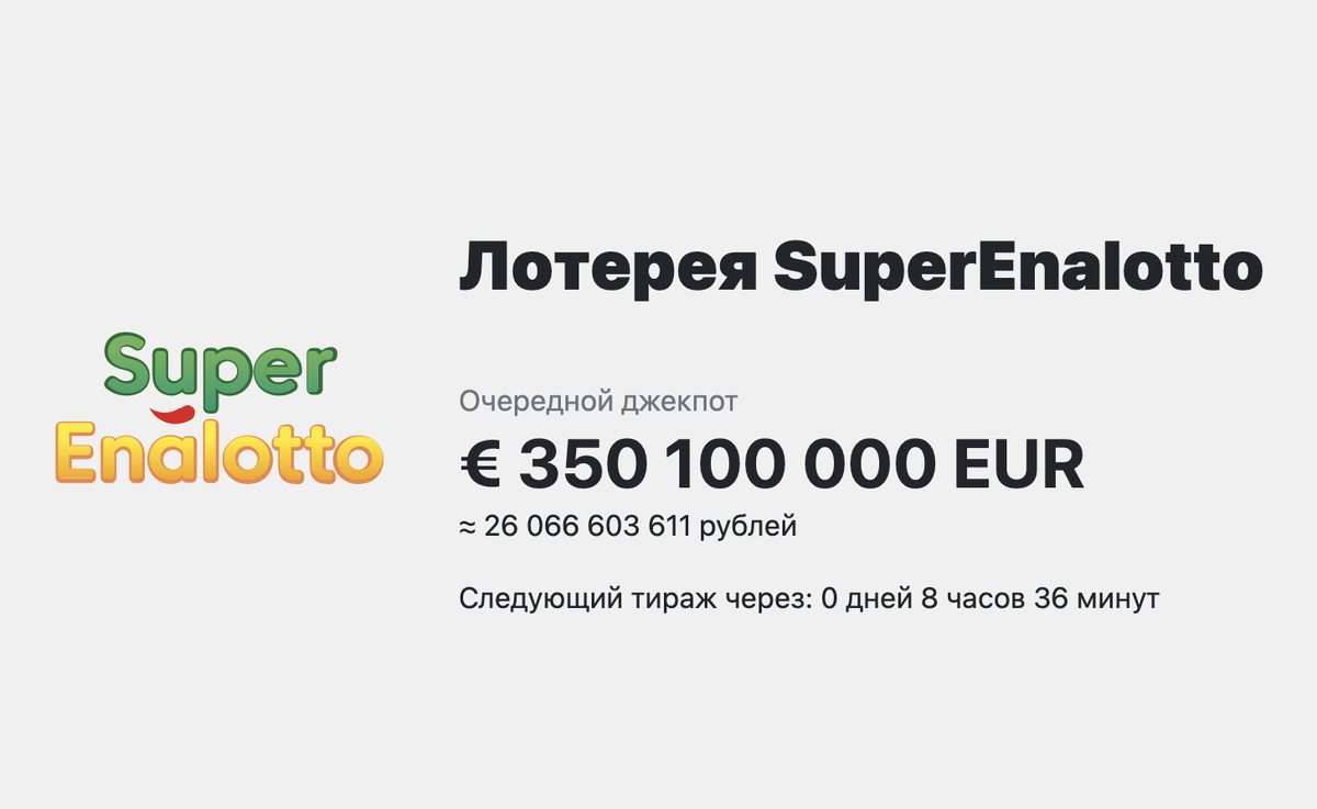 🔥 Джекпот SuperEnalotto превысил отметку в €350 миллионов евро!