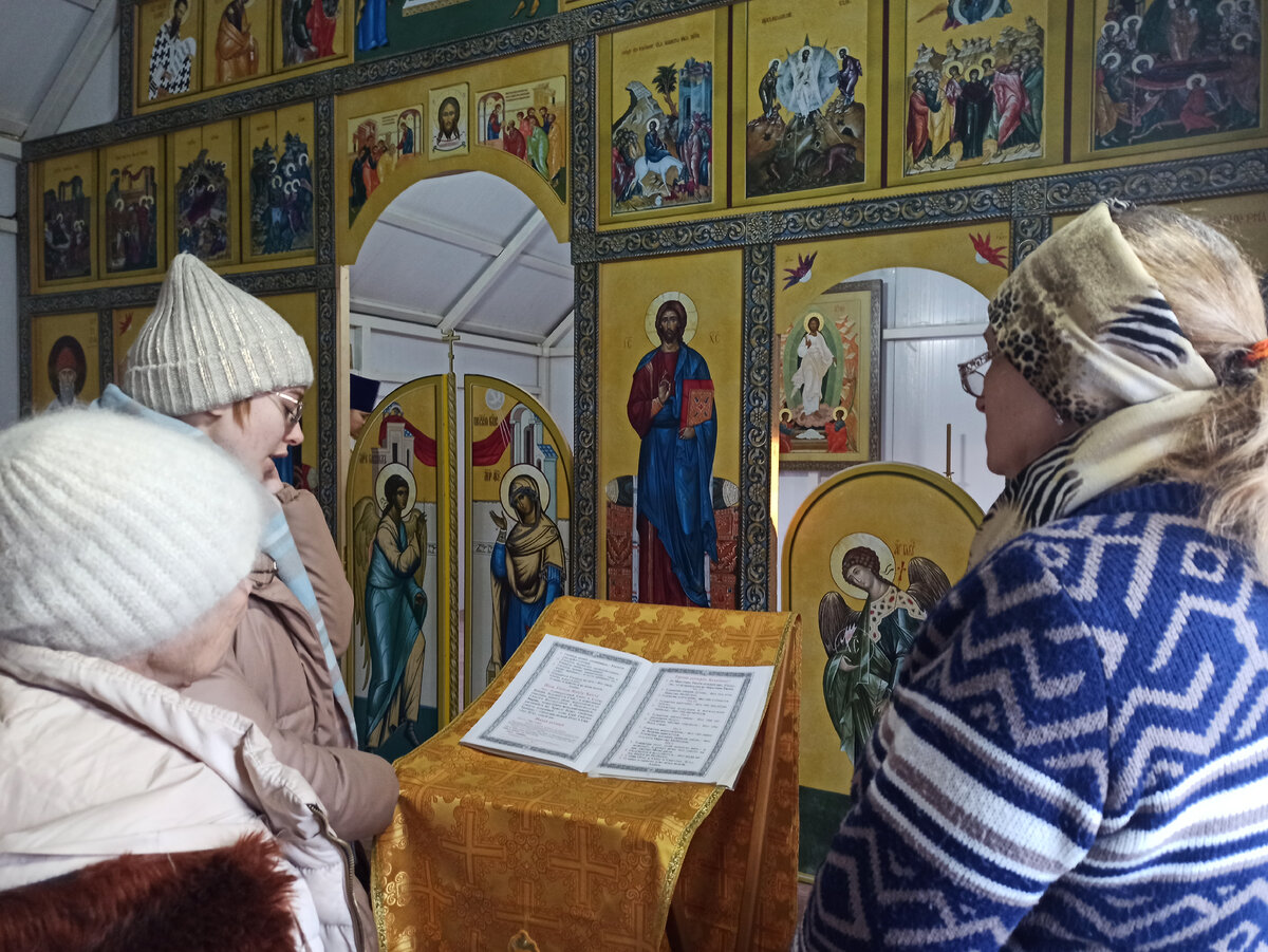 Малыши в куртках, потому что в храме не жарко. Работают обогреватели.