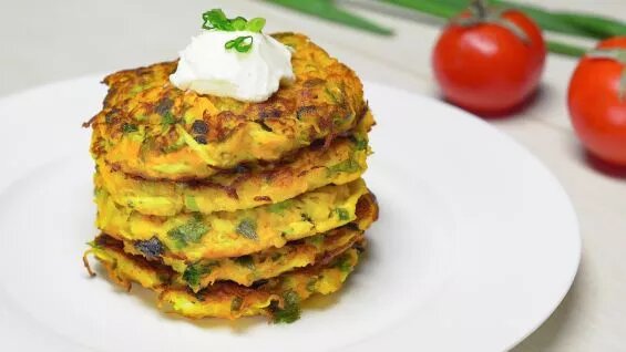 Оладьи из кабачков, горячие, прямо со сковороды с золотистой корочкой, сочные и аппетитные, со сметаной или чесночным соусом, а главное - без муки. Приготовить такие оладьи из кабачков на сковороде можно очень быстро и совсем несложно. На завтрак, обед или ужин они будут всегда кстати. Кабачковые оладьи называют полезным лакомством, и не согласиться с этим невозможно. Приятного аппетита! Время приготовления: 35 минут Количество порций: 4 Калорийность: 98 kCal Ингредиенты Как приготовить оладьи из кабачков