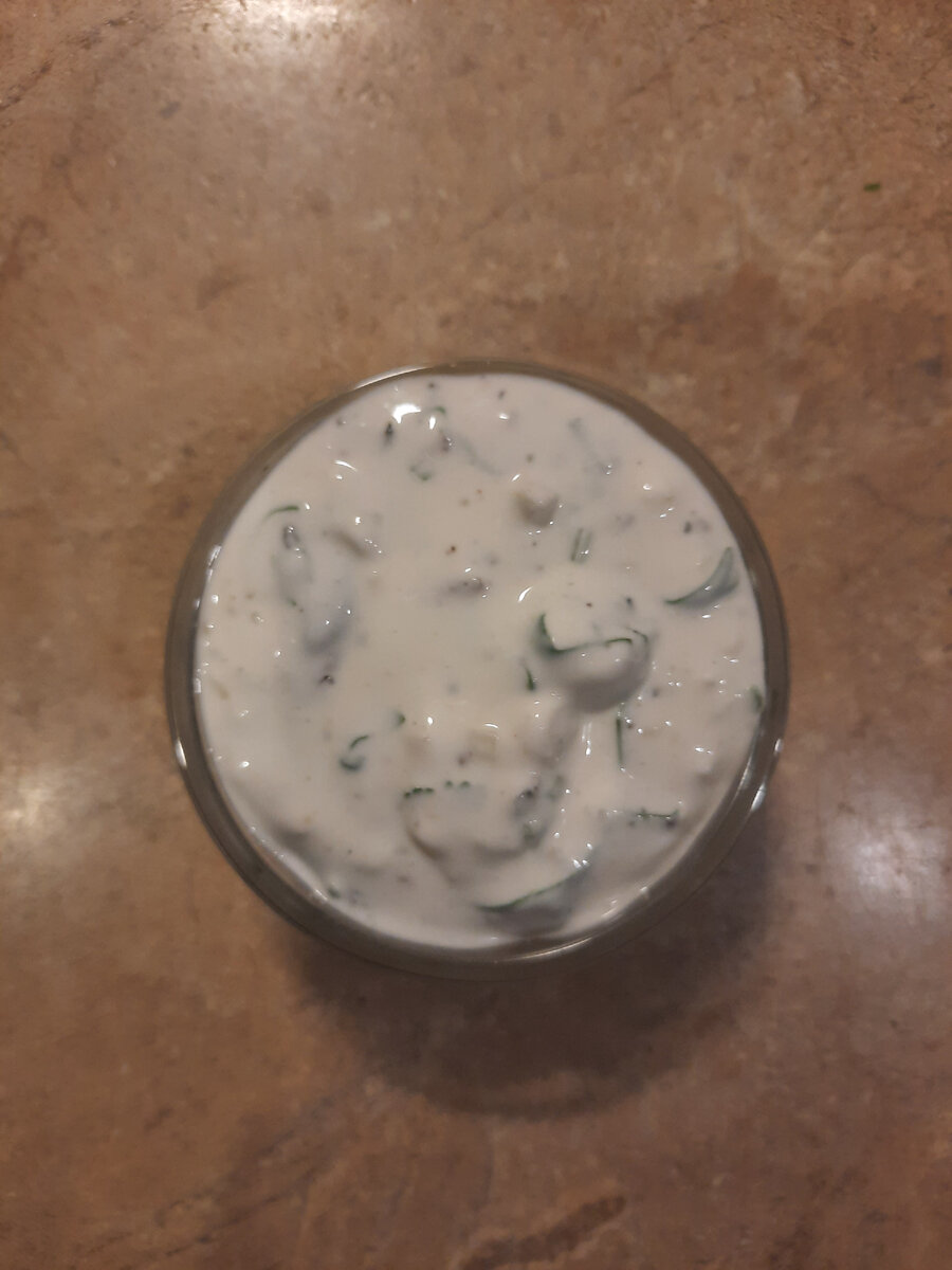 Это самый простой и самый вкусный соус для этого блюда . Ингридиенты: 1. Сметана - 150 гр; 2. Чеснок - 1 зубчик; 3. Соль - по вкусу; 4. Перец красный острый молотый - по вкусу; 5. Кинза - 2 кустика. Способ приготовления: В этом пункте рецепта, не буду сильно растекаться мыслью по древу, ведь все элементарно. 1. Нашинковать зелень в труху; 2. То же самое сделать с чесноком; 3. Бахнуть это все в сметану; 4. Добавить соль и перец; 5. Тщательно перемешать и вуа ля, соус готов) Приятного аппетита!)