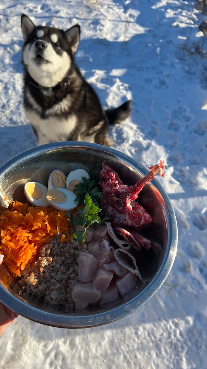 Аляскинский маламут – крупная порода, любящая вкусно покушать. Глядя на размеры пса, создается впечатление, что он требует огромного количества пищи. Возникает вопрос: чем кормить маламутов, чтобы удовлетворить их пищевые потребности? Расскажу о том, чем питается мой маламут и что любит. Заводчики породы расходятся во мнениях: одни заявляют о пользе сухого корма, другие настаивают на натуральном питании, а третьи совмещают и то, и другое. Я изучила информацию в интернете, перечитала много форумов по питанию маламутов. Большинство представителей этой породы всеядны. И многие кормят натуральными продуктами. Если у вас есть время на готовку, можете варить ему. Я так и делала. Щенок поедал практически все, что ему давали. Главное, что нужно учесть, так это то, что им нужно сбалансированное питание, витамины в том числе... Нельзя кормить одной кашей. В рацион должны входить: 1. Постное мясо. Осторожнее нужно быть с курицей, так как она аллергенна для собак. 2. 1-2 раза в неделю отварная