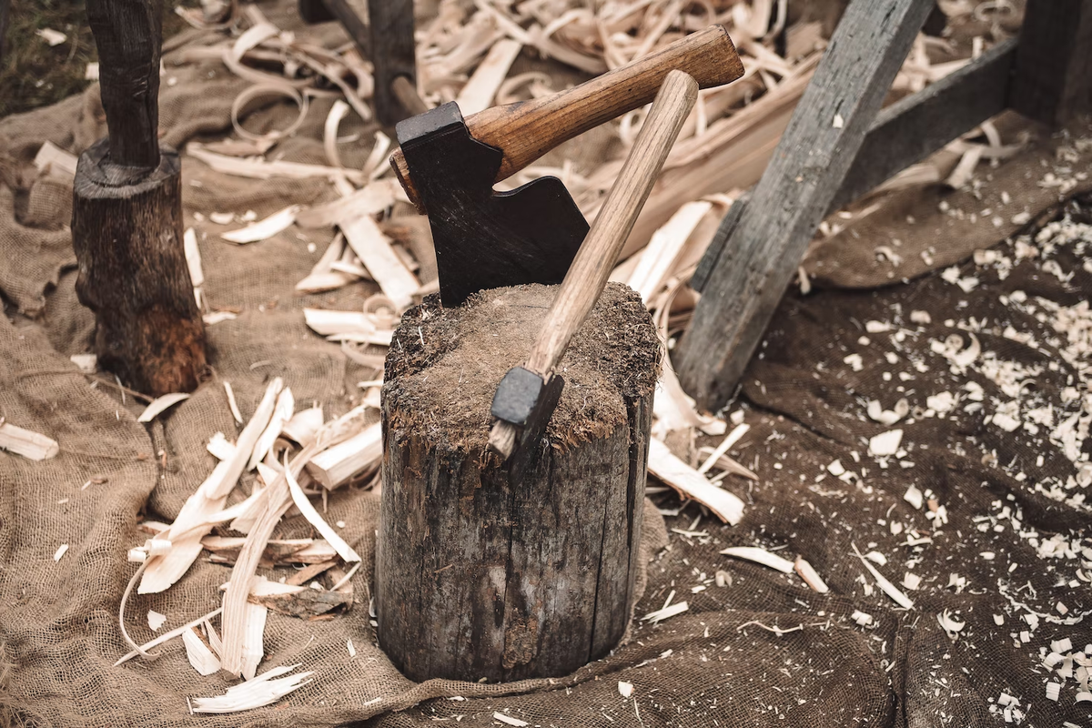 Вроде бы ничего сложного тут нет: позитивный настрой и качественный колун — это уже, как говорится, половина успеха. Но другая половина напрямую будет зависеть от соблюдения некоторых простых правил. Можно и не соблюдать, но тогда колка дров превратится для вас в долгий и мучительный процесс. Еще и травму легко получить. Первое, на что нужно обратить внимание — наличие колоды Многие колют дрова прямо на земле. Но лучше все-таки использовать колоду. Высота ее должна быть около 60—70 см. Если диаметр чурки не превышает 30 см, ее смело можно колоть на две части, то есть удар колуна должен прийтись по центру «заготовки». Не в точности до миллиметра, но желательно плюс-минус посередине, чтобы лишних взмахов не делать. После этого каждую половинку можно будет расколоть еще на две или большее количество частей, в зависимости от того, какого размера поленья вам требуются. Все индивидуально — строгих критериев нет. В целом, все, что было описано выше — это базовые приемы, которые даже не об