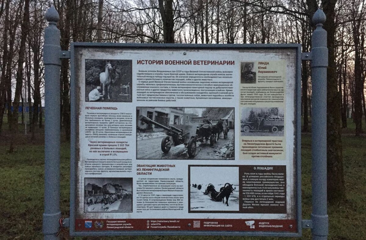 В ноябре 2021 года я написал заметку про памятное место, посвящённое событиям Великой Отечественной войны. Стела связана с подвигом военных ветеринаров, которые в том числе занимались эвакуацией животных по льду Ладожского озера - по "Дороге жизни". Почитайте ссылку выше, не все про это знают. Я лично, пока не посетил данное место - не знал. Сегодня ехал в маршрутном такси №521 и, на удивление, увидел на стекле не рекламу (точнее не только стандартную рекламу), а историческую справку по данной теме. Судя по заголовку данный плакат был напечатан в 2020 году и до сих пор, даже спустя два года, находится в транспортном средстве, что приятно! Увиденной плакат и дал мне повод ещё раз напомнить вам о не самой известной достопримечательности Ленинградской области, которая рассказывает нам о не самых известных фактах, связанных с военными ветеринарами. Если вы не читали, переходите в мою старую заметку! Она актуальна и тем, что завтра для Северной столицы памятная дата. 18 января (1943 год