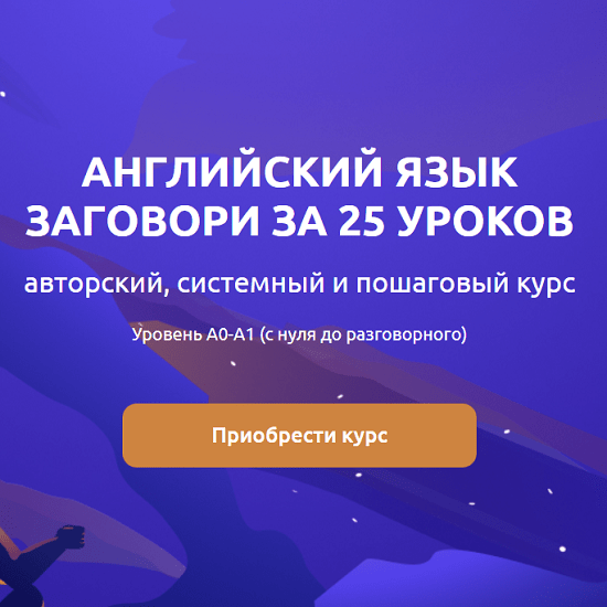 АНГЛИЙСКИЙ ЯЗЫК ЗАГОВОРИ ЗА 25 УРОКОВ авторский, системный и пошаговый курс Уровень А0-А1 (с нуля до разговорного). Что входит в курс: Данный курс вы можете купить у нас на сайте за 1.150 рублей