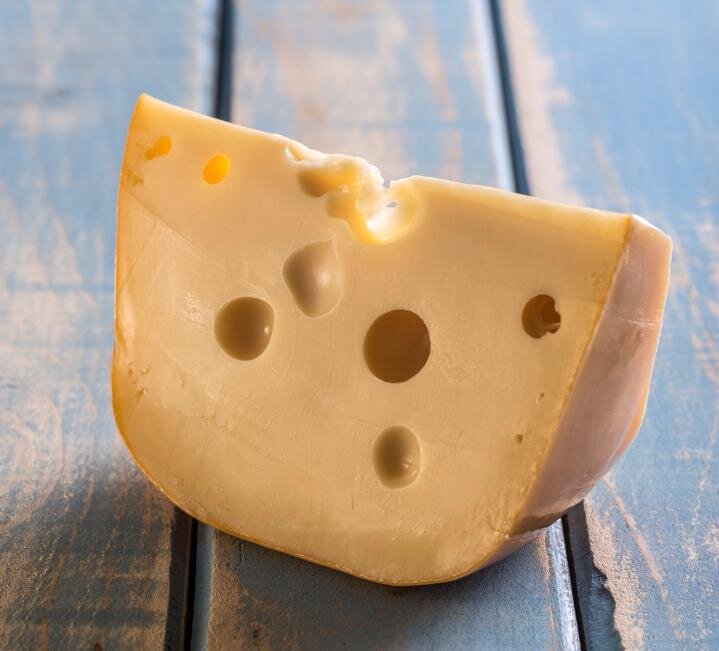 Восхитительный результат эксперимента сыроваров: классический, горячо любимый всеми, маасдам и полезнейшее козье молоко — крупные «глазки» и сладковатые ореховые нотки, переплетаются, с характерным для козьих сыров, вкусом.