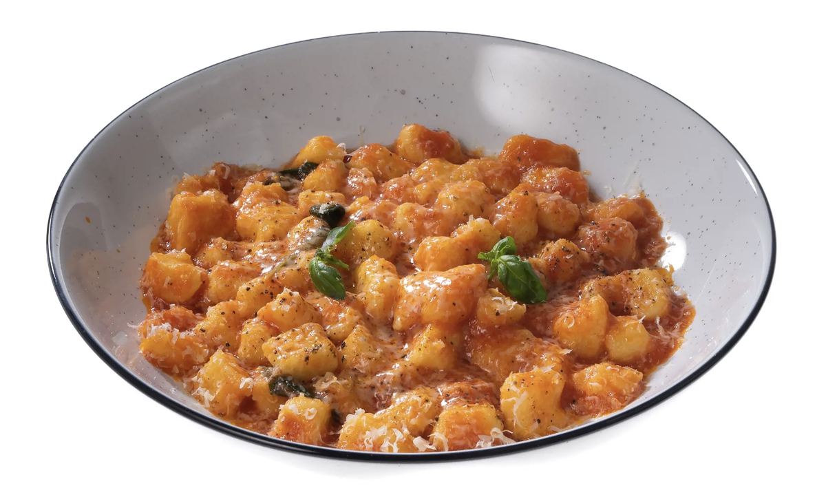 ИНГРЕДИЕНТЫ ПОРЦИИ 6 Картофель-600 г Картофельный крахмал-15 г Пшеничная мука-50 г Яичный желток-1 штука Сыр грана-падано-40 г Оливковое масло-30 мл Чеснок-2 зубчика Томатное пюре-500 г Зеленый базилик-10 г Соль-по вкусу Сахар-по вкусу Молотый черный перец-по вкусу ИНСТРУКЦИЯ ПРИГОТОВЛЕНИЯ 1 ЧАС 1 Картофель, не очищая, сварить до готовности. 2 Горячий картофель очистить от кожицы и размять в пюре. 3 Добавить к пюре крахмал, муку, желток, 20 грамм тертого сыра и 5 грамм соли. Быстро перемешать до однородности. 4 На подпыленной мукой поверхности разделить тесто на несколько частей, скатать их в колбаски толщиной с палец и нарезать небольшими кусочками. 5 Обвалять нарезанные ньокки в муке. 6 Для соуса в сковороде разогреть оливковое масло, бросить в нее целые зубчики чеснока и влить томатное пюре. Прогреть; если пюре очень густое, добавить немного воды или бульона. Добавить сахар, соль и перец. В конце положить несколько листьев базилика. 7 Параллельно в большой кастрюле довести до кипени