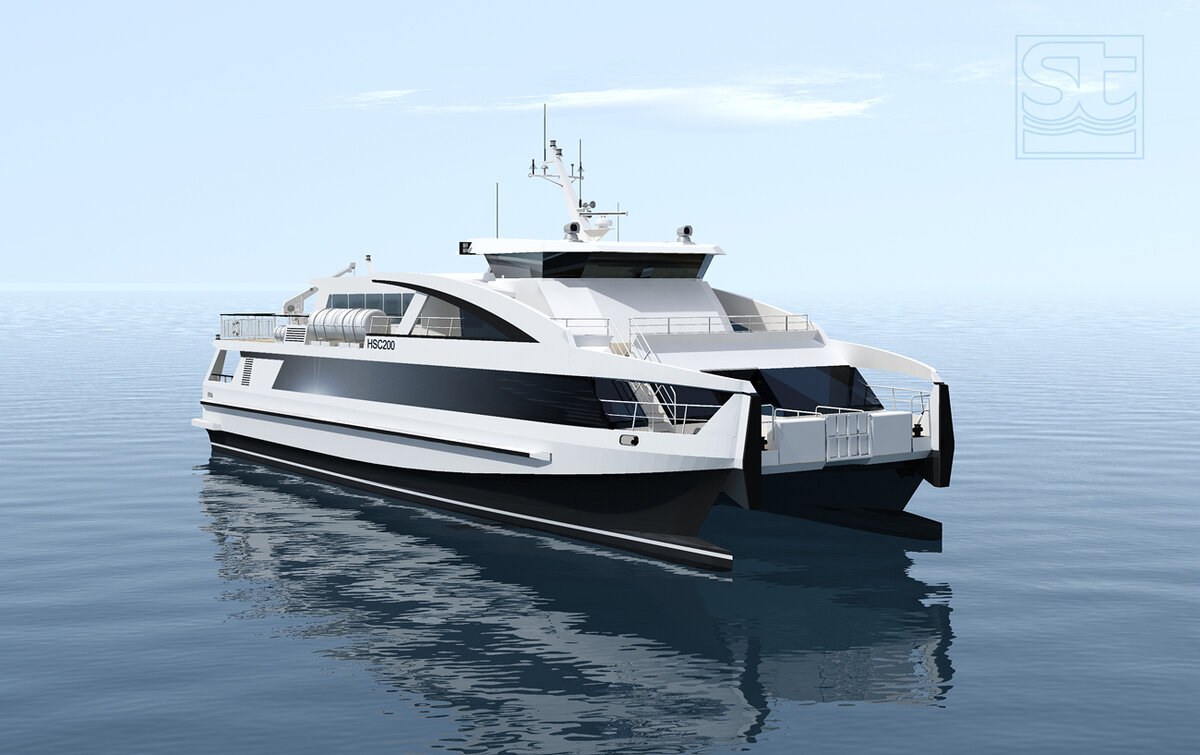 В самом конце 2022 года заключен контракт на приобретение первого пассажирского судна проекта HSC200 разработки российской компании «Си Тех» (Нижний Новгород) с участием фирмы Icarus Marine Ltd. (ЮАР). Это двухпалубный морской катамаран с динамической разгрузкой подводными крыльями, рассчитанный на перевозку до 200 человек, со скоростью 27 узлов (50 км/ч) на расстояние до 400 км. Его построят на одной из верфей нашей страны в 2023-2024 годах. При длине всего 33 метра судно имеет ширину более 10 метров, что позволяет вписать в его габариты три пассажирских салона с мягкими креслами, оборудованными откидывающимися спинкой и столиком. За рубкой катамарана с экипажем из 4 человек расположена жилая зона с 3 каютами для отдыха и кают-компания с местом разогрева пищи. Добавим, что использованная конструкция (катамаран с динамической разгрузкой подводными крыльями) по сравнению с глиссером, имеющим такую же скорость, расходует на 40% меньше топлива и несет на 8% больше полезной нагрузки. Как
