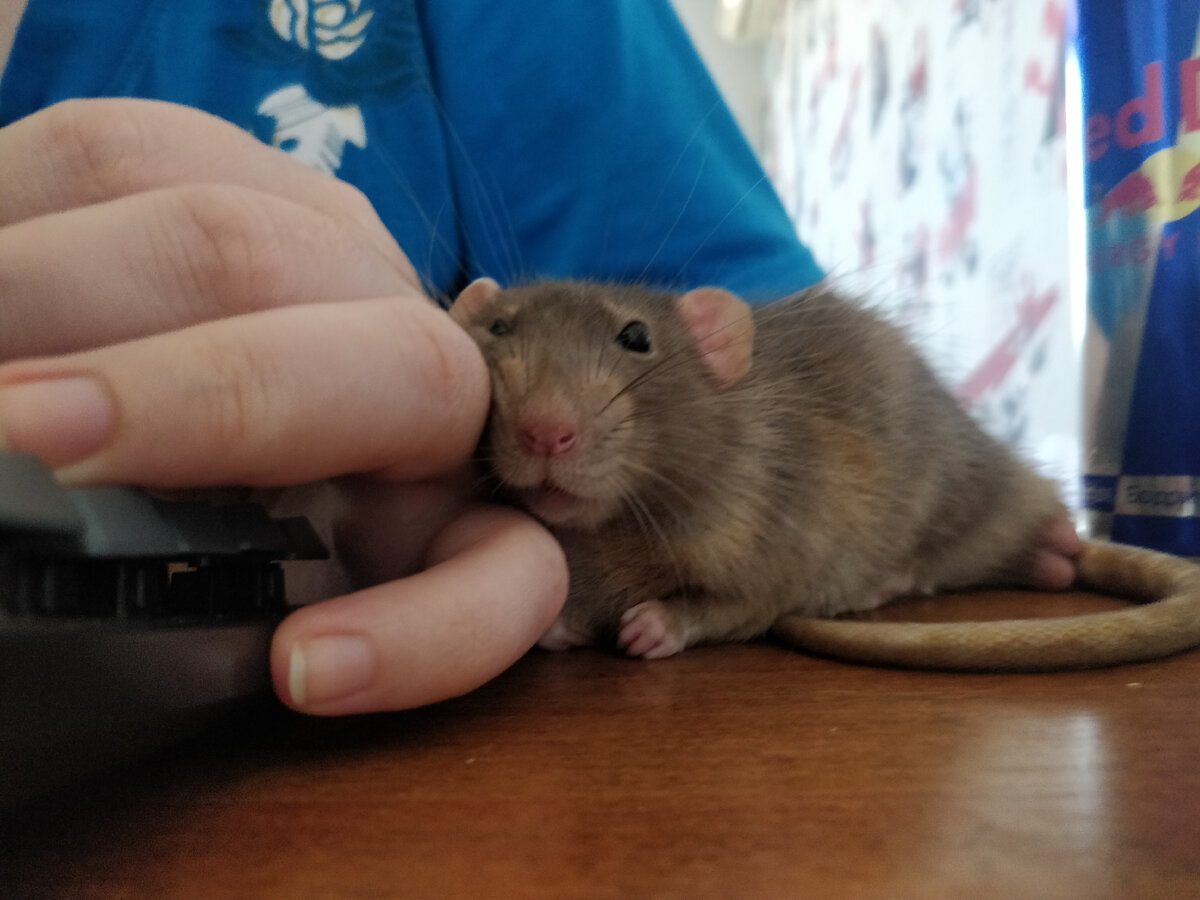Я потеряла друга. Маленького, серенького, милого и нежного крысика. Его звали Афанасий. Он прожил со мной почти 2 года. Я пришла в зоомагазин за кормом для кота и увидела крыску. И мне так захотелось чтобы у меня дома поселилось это маленькое чудо. Но я сомневалась. Время было трудное. А это забота, ответственность, траты. Но мой друг сказал одну фразу после которой я перестала сомневаться: если он заставит тебя улыбаться чаще, чем сейчас, тогда он тебе нужен. И я пришла в магазин за своим Афосей. Он помещался в ладони и был напуган переменами. Но дома быстро освоился. Так получилось что жил без клетки и полюбил спать в коробке из под салфеток или под монитором. Ждал когда я проснусь, воровал салфетки, бегал за веревочкой. Любил общаться, спать в руке и сидеть за пазухой, но категорично не любил целоваться отпихиваясь всеми лапами. Он был нежным, никогда меня не кусал и всегда старался отобрать кусок побольше от всего что я ела. Когда мне пришлось принимать решение, слово "эвтаназия