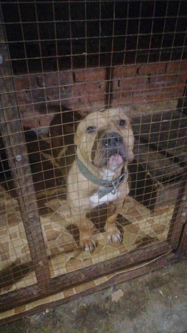 Но здесь история тупиковая, поясню. Позвонил владелец, сказал СРОЧНО нужно отдать породистую (документов и клейма нет, но все признаки породы на месте) американскую булли. Он заводчик мелких декоративных собак, взял булли, продал её щенков по 50 тысяч, а потом разочаровался (без пояснения, только догадки) и посадил её в уличный холодный вольер.