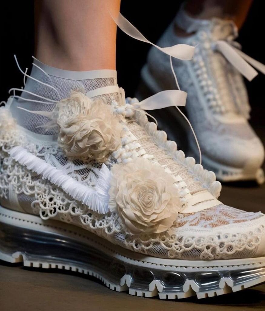 Искусственный интеллект ai_clothingdaily создал черевички мечты. Они погружают в мир красивых кружев и цветов, а также идеально подойдут для свадебного образа.