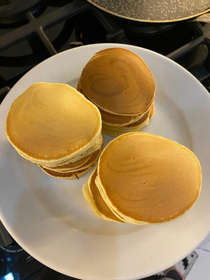 Ингредиенты: ~~Ванилин-5г ~~Молоко коровье обезжиренное-100 г ~~Яйцо куриное-1 шт. ~~Мука-120 г ~~Разрыхлитель-5г Яйцо взбить с молоком, добавить все сухие ингредиенты, тщательно взбить. Выливаем 1,5-2 столовые ложки теста, до появления частых дырок, переворачиваем. Складываем в стопку, поливаем медом, засыпаем ягодами