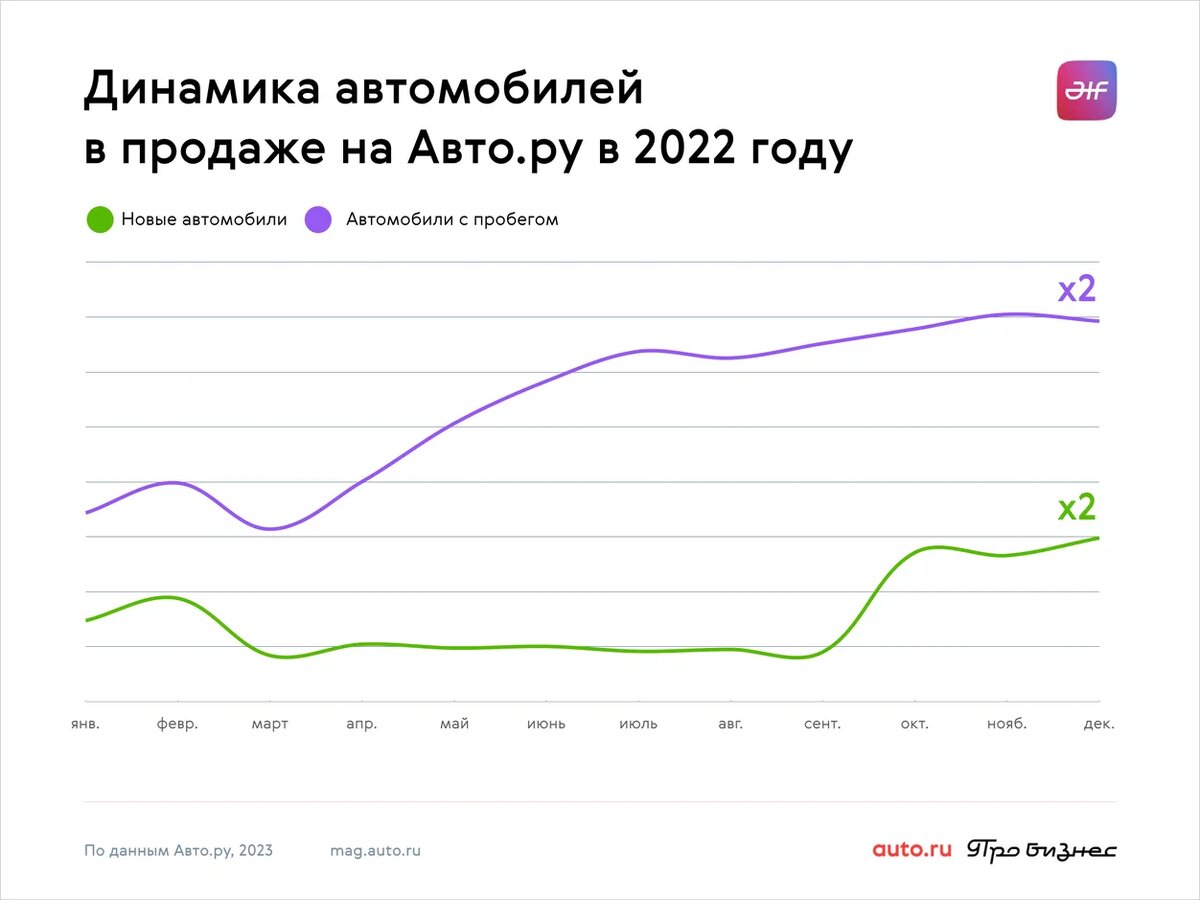 Количество объявлений о продаже электромобилей за год удвоилось, причём как среди новых машин, так и среди вариантов с пробегом — такие выводы сделали аналитики, изучив среднее количество предложений на Авто.ру за день. А если сравнить рынок электромобилей с началом 2021 года, то вариантов без пробега стало больше в 5 раз, а подержанных — почти втрое. Несмотря на официальный уход автомобилей давно знакомых марок, российский рынок электрокаров пополнился моделями из Китая. Многие из них на наш рынок массово не поставляются (по крайней мере пока), но на Авто.ру в 2022 году появлялось немало интересных моделей. Среди них, например, BYD Han, Qin и Tang, HiPhi X, Hongqi E-HS9, Nio EC6, ES6, ES8, Skywell ET5, Voyah Free, а также Weltmeister E5, EX5, W6. Росту ассортимента и появлению новых объявлений способствовал и старт производства российских машин Evolute (слегка изменённых моделей DongFeng), а также параллельный импорт. Вторичный рынок тоже пополнился импортными машинами — во многом это