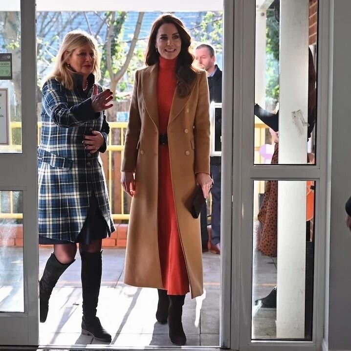 Сегодня утром принцесса Уэльская побывала в детском саду в Лутоне. На принцессе - красная водолазка с высоким воротом 'Peppe' сочетается с юбкой-миди 'Epper' того же тона, талия подчёркнута чёрным широким поясом. Всем известно, что Кейт основала Королевский фондовый центр для детей раннего возраста, их развитие в ранние годы - это основное направление, по которому работает супруга принца Уильяма. Придя в детскую, Кейт поблагодарила сотрудников за гостеприимство и прокомментировала прохладную, но ясную погоду, сказав, что сегодня несмотря на холодную погоду - прекрасный день. Детский сад находится в ведении Альянса раннего развития и предлагает 70 мест для местных детей в возрасте от двух до пяти лет. Во время своего визита принцесса встретится с учителями раннего возраста и обсудит роль, которую созданные условия играют в формировании развития ребенка. Ну и конечно же, впереди встречи с родителями и детьми. Вместе с детьми принцесса сделала маску кролика: