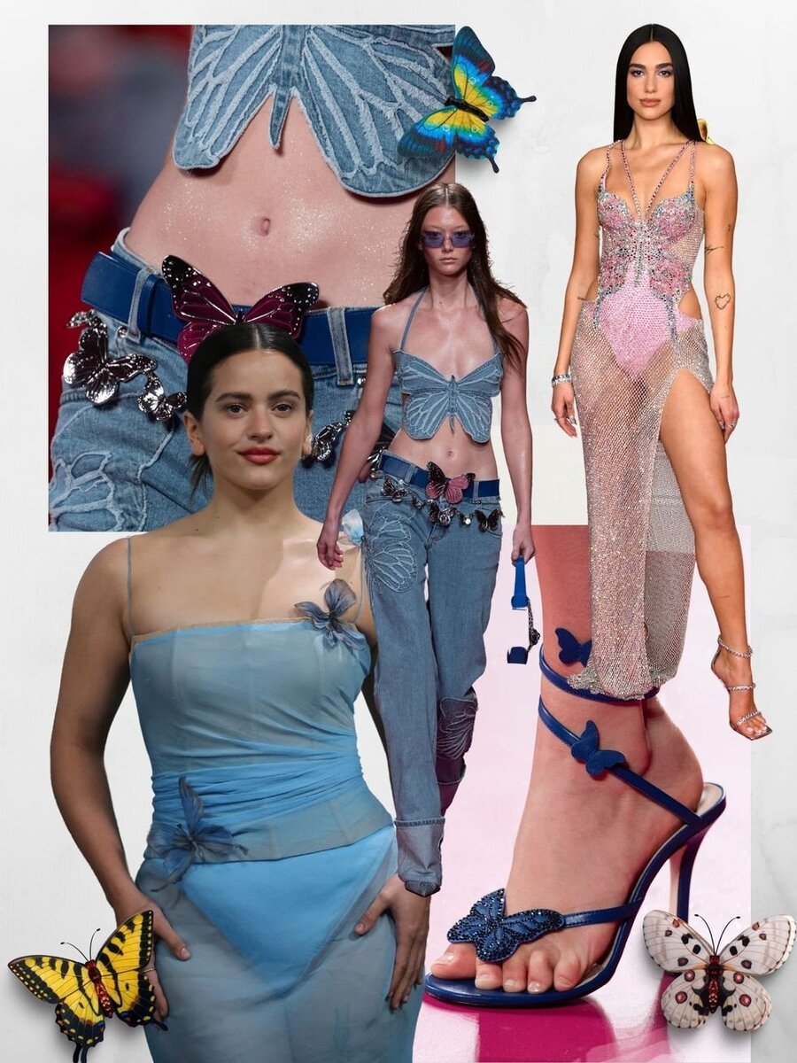 Мода нетерпелива, она всегда живет больше в будущем, чем в настоящем. Мы всегда подхватываем модные тенденции с подиумов спустя год, реже полгода. Среди всех трендов 2022 года есть один, который уже начинают предсказывать как продолжающимся в 2023 году: бабочки. Хотя это насекомое не пробралось полностью на десяток подиумов, оно все же пробралось в некоторые наряды знаменитостей и влиятельных лиц, которые определяют темп моды почти так же, как самые известные дизайнеры. В чем причина этой тенденции? Возвращаются 2000-е, постепенно возвращается вся мода того времени. В случае, что касается бабочек, то они стали повторяющейся деталью в нарядах Дуа Липы, которая даже взяла их на красную дорожку премии «Грэмми». Розалия недавно надела винтажное платье Dolce&Gabanna с деталями в виде бабочек на гала-концерте Los 40 Awards. Хотя знаменитости и такие фирмы, как Blumarine, Prada или Chanel, предсказывают возвращение бабочек в самом буквальном смысле, эта тенденция может не прижиться, как это п