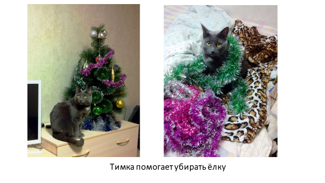 Вчера убрала елку, гирлянды, игрушки. Новый год прошел, да и старый - тоже. И как-то грустно стало от этой мишуры. Минул еще один год. Пролетел... незаметно и быстро. И вот уже месяц январь перебежал за середину... Украшать елку и развешивать гирлянды, мишуру помогала внучка Тася. Приезжали на новогодние праздники дочка и внучка. Уехали ночью 9 января, в самый пик мороза. Опасались, что машину в такой мороз, чтоб проводить, не завести. Но завелась, проводили на вокзал. Уехали и грустно мне стало... А елку разбирать помогал мне кот Тимка. Вот здесь моего кота хорошо видно. Тимка, Тимочка, Тимуля, Тимофей - так мы его называем. Итак, как проходят дни. Занимаюсь домашними делами, пока не настал дачный период. А скоро подойдет время высевать семена рассады. Вчера купила в Магните грунт для рассады, всего 44 руб 5 литров. Посмотрю что он из себя представляет, если хороший - еще закуплю. Молодцы они - вовремя привезли. Только накануне я подумала - грунт бы купить... Да и семена появились, п