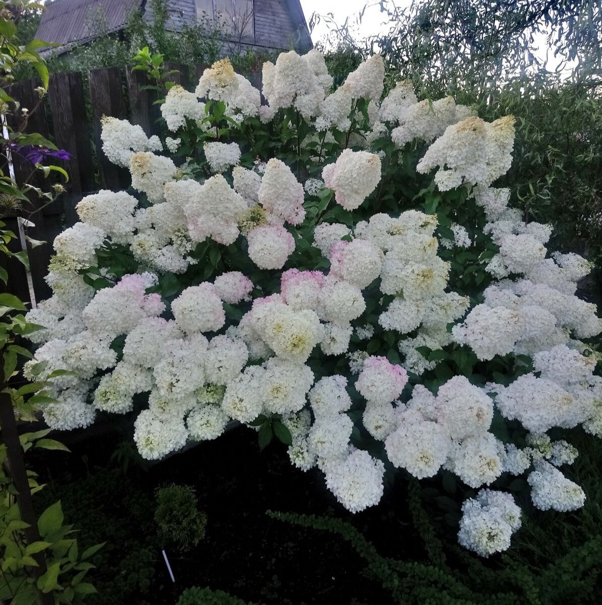 Без долгих прелюдий, слово Ирине: Позвольте познакомить вас с моими гортензиями! Гортензии у меня всего две. Обе подарочные. И знаете, это шикарные подарки на долгие годы! Первая - известная многим "Ванилла Фрейз" - клубничная ваниль. Вкусное название для красивого куста. И на мой взгляд, оправданное название. В соцветиях мы видим плавный переход от белого к насыщенно-розовому и уход к бордово-красному. Заканчивается цветение не очень опрятно. Но это я с легкостью прощаю. Ведь гортензия цветет с первой декады июля до октября. Несколько месяцев красоты!!! Размеры. Тут можно сказать, что он достаточно большой - для меня. Летом он в высоту достигает чуть более двух метров, ширина примерно так же. Размеры, как и форму куста можно варьировать с помощью обрезки. Честно признаюсь, с "Ванилкой" у меня отношения "осторожные", пожалуй, подберу это слово. Это связано именно с обрезкой. Размеры соцветий гортензии связаны с типом обрезки. Если вы оставляете для следующего цветения короткие ветки: 1