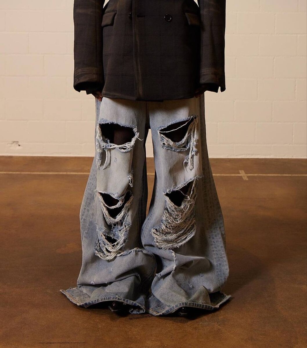 • Самой популярной моделью 2023 года мы назовем Puddle jeans — ультрадлинные широкие джинсы. Такие можно найти в последней коллекции VETEMENTS.