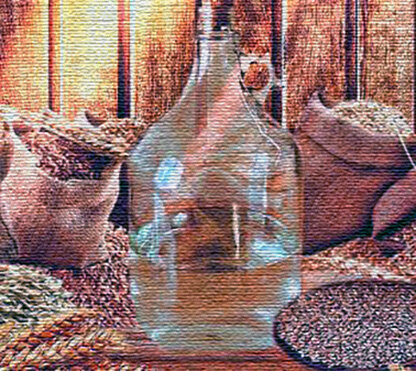 В куб для перегонки (в моем случае это молочный алюминиевый бидон на 12 литров) я наливаю половину браги. На дно я укладываю сторож для молока. Закрываться куб должен очень герметично (у меня сохранилась родная резинка). Подвешиваю сухопарник (1-литровая закручивающаяся банка) и подключаю его через шланг к аппарату, а к сухопарнику подключаем спираль, которая сделана из 2-метровой медной трубки, середина которой была обмотана вокруг 0,5 литровой стеклянной бутылки.