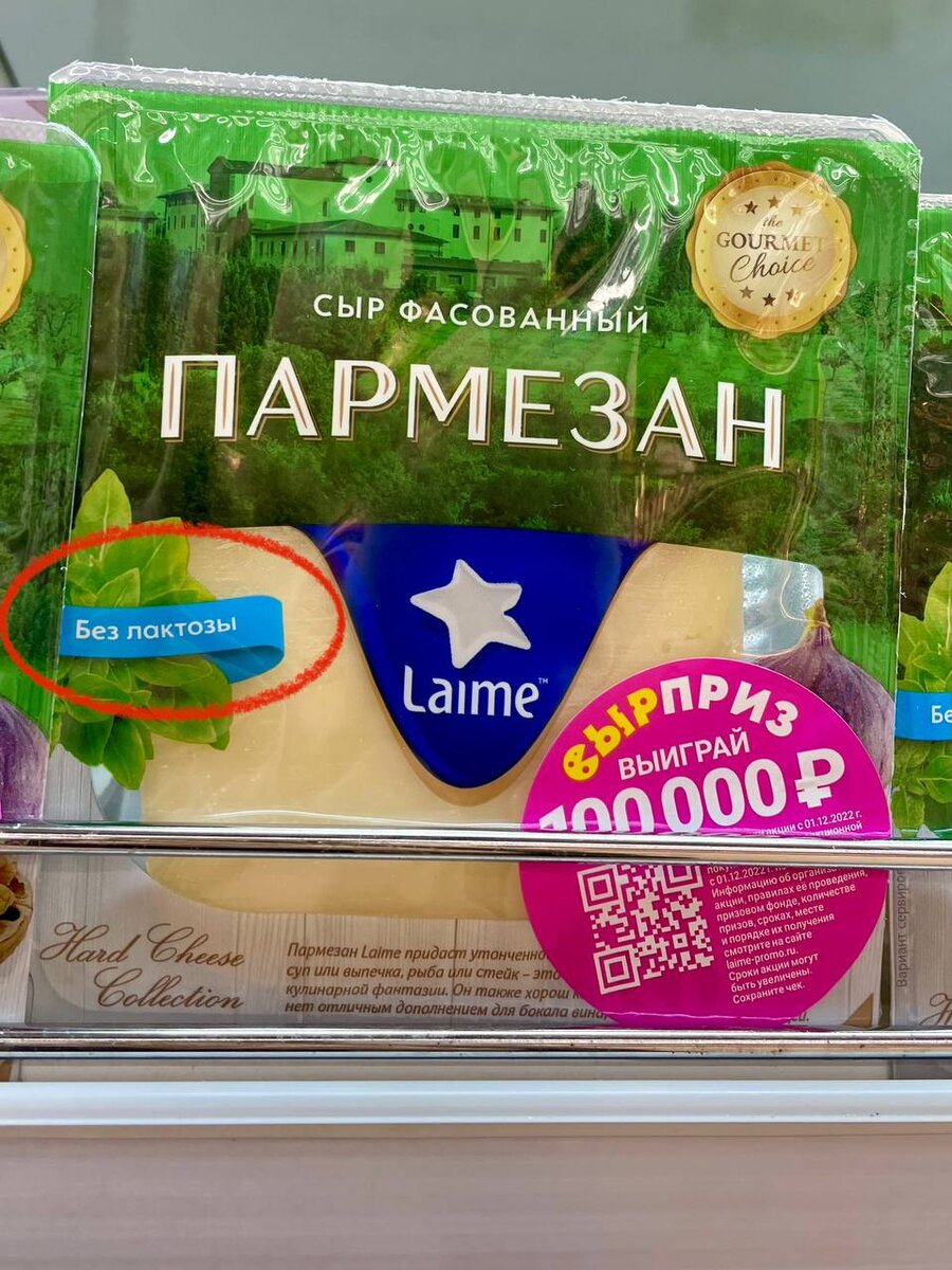 Интересную наклейку я сейчас увидела в магазине на сыре. «Без лактозы» Мне, сыровару, бросилось в глаза. Как будто любой другой твердый сыр с лактозой - а этот сделан по-особому рецепту 😁