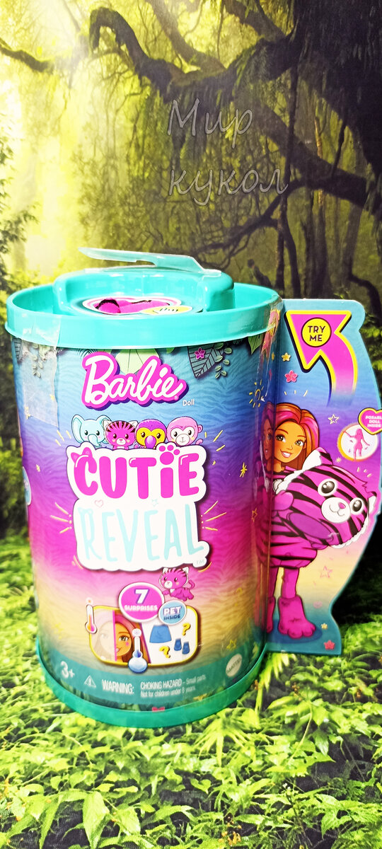 У меня уже были две куклы из серии Barbie Cutie Reveal. Это пандочка и ленивец. Обожаю этих кукол. Еще в коллекцию хотела себе любую Челси и Барби в костюме оленя. С оленем у меня пока никак не срастется, а вот когда увидела в продаже крошку Челси, не смогла устоять. У продавца были Челси в костюме тукана, обезьянки и тигра. Долго выбирала, в итоге решила, что хочу тигрулю. И не прогадала. Пойдемте посмотрим скорее на девочку и сравним ее со взрослыми куклами) Тубус значительно меньше, но в остальном он ничем не отличается от больших кукол. В этой серии есть также малышка слоненок. Если бы был слоненок в продаже, то скорее всего взяла его. Такой он милый) Челси со своей старшей подружкой ленивцем) До чего ж очаровательная малышка. В восторге от девочки) Костюм состоит из головы, платья, съемных лапок на руках и ногах. У взрослых кукол, съемная голова подшита снизу, чтобы волосы не выпадали, у малышки такого нет. Также у взрослых кукол кофта двусторонняя, у крохи платье только с одной