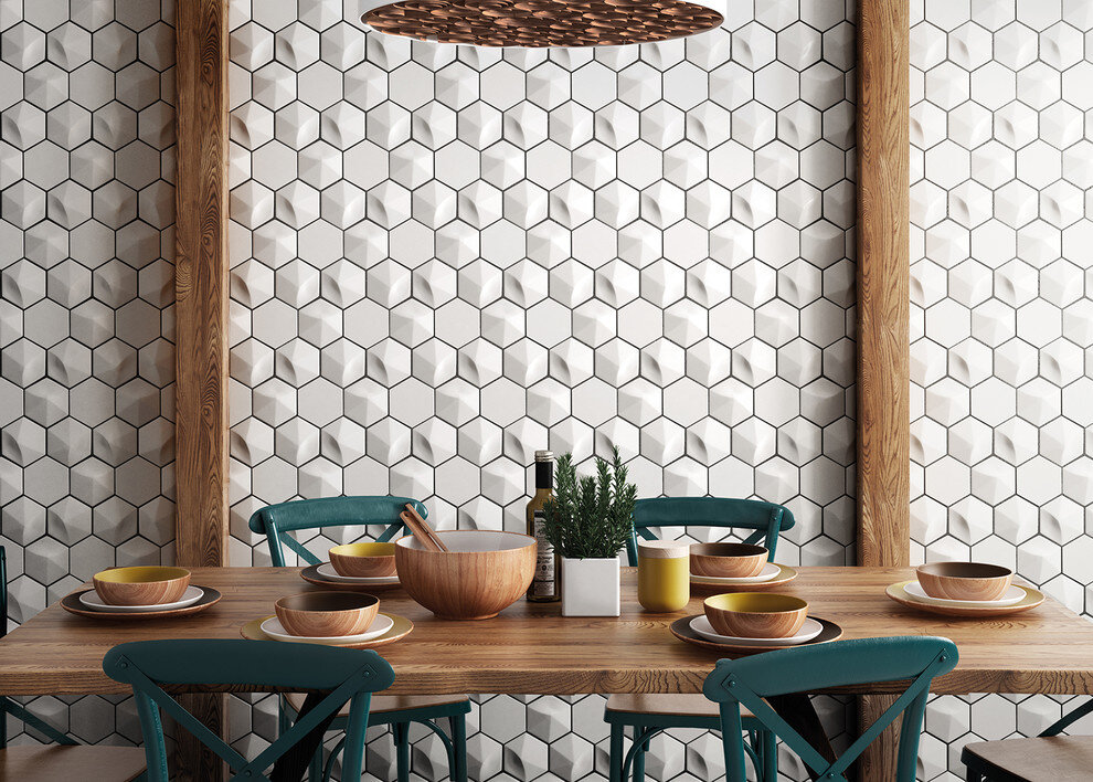 На фото: объемную плитку из коллекции Prisma фабрики Undefasa можно уложить разными способами.