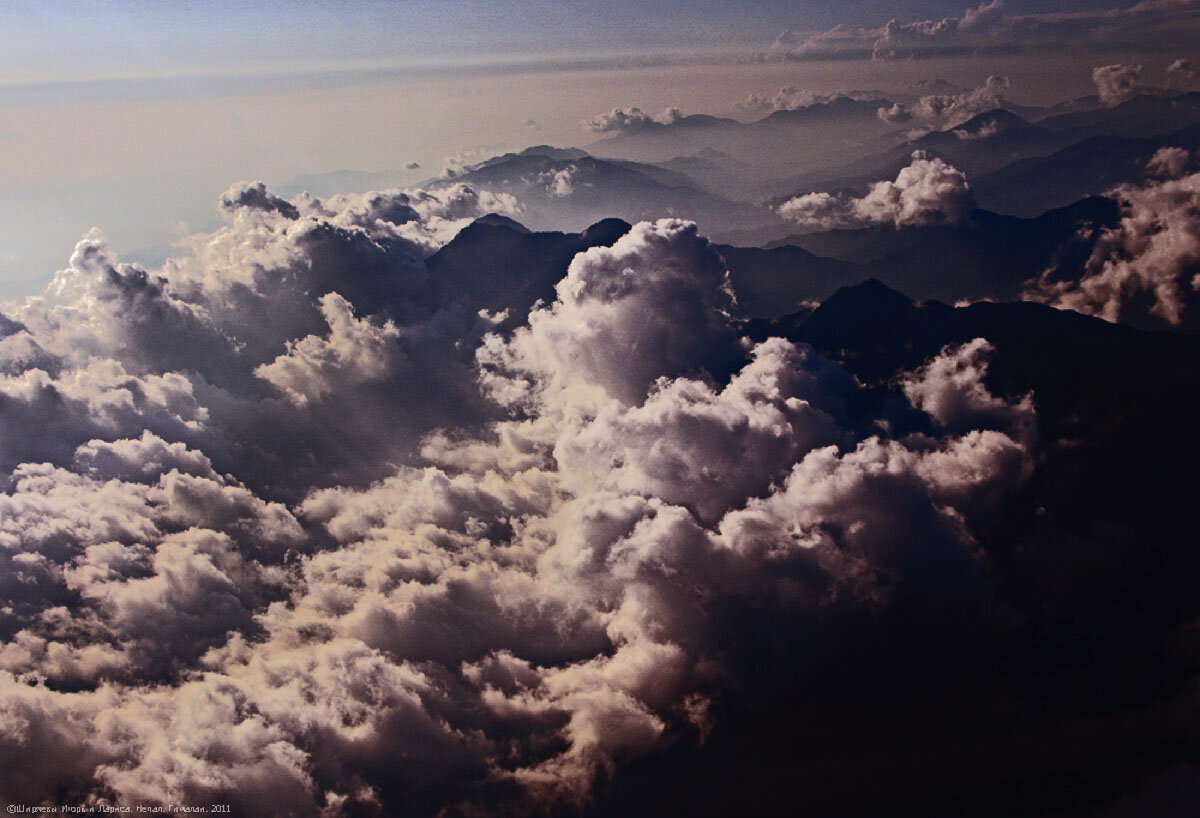 На подлете к Катманду впервые в жизни видим Гималаи. Удивительное зрелище – белые вершины гор возвышаются над белыми барашками облаков.