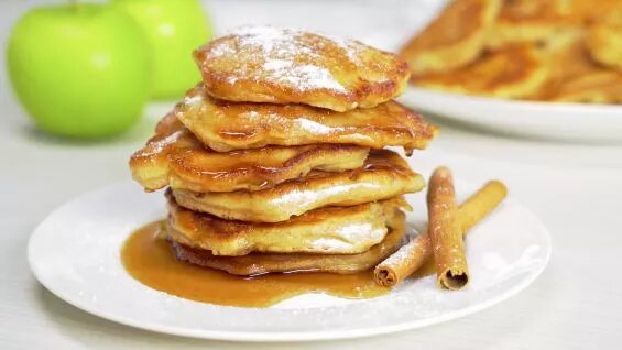 Оладьи с яблоками подходят для утреннего завтрака или на десерт к чаю. Оладушки получаются пышными, пушистыми с неповторимым ароматом яблок и станут любимым рецептом ваших детей. Быстрый и простой рецепт с минимумом ингредиентов станет вашим фаворитом. От выбора сорта яблок вы будете получать новые яблочные нотки в этом десерте. Вам понадобится всего 25 минут, чтобы удивить гостей или порадовать родных! Время приготовления: 25 минут Количество порций: 6 Калорийность: 145 kCal Ингредиенты Как приготовить яблочные оладьи