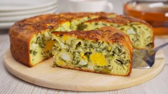 - К заливному пирогу с зеленым луком и яйцом можно подать сметану.