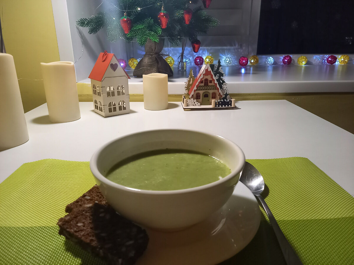 СУП ПЮРЕ из БРОККОЛИ и ШПИНАТА Я обожаю супы- пюре. Этот суп я придумала сама, сначала делала просто из картошки и брокколи, потом стала добавлять кабачок, потом шпинат. Все продукты я беру на глаз, может вам захочется добавить больше картошки, или кабачка, мои пропорции смотрите на фото. Брокколи и шпинат я покупаю на развес на рынке, в палатке замороженных овощей, иногда шпинат во Вкус Вилле. Я делаю его на мясном бульоне, чтобы он был более сытный. Отвариваю ФИЛЕ грудки индейки грамм 300-400гр, не больше. Бульон получается постный и не перебивает вкус супа. Бульон из БЕДРА индейки мне не нравится по вкусу. добавляю лавровый лист, черный перец и соль в конце варки, варю 30-40мин. Я обжариваю луковицу на подсолнечном масле+ добавляю кусочек сливочного. Затем достаю мясо из бульона, режу его на кубики и сразу кидаю в блендер. У меня BRAUN с чашей. У меня есть так же ручной блендер, но я не рискую измельчать овощи с мясом в 5 литровой кастрюле, именно в такой я варю суп. Добавляю