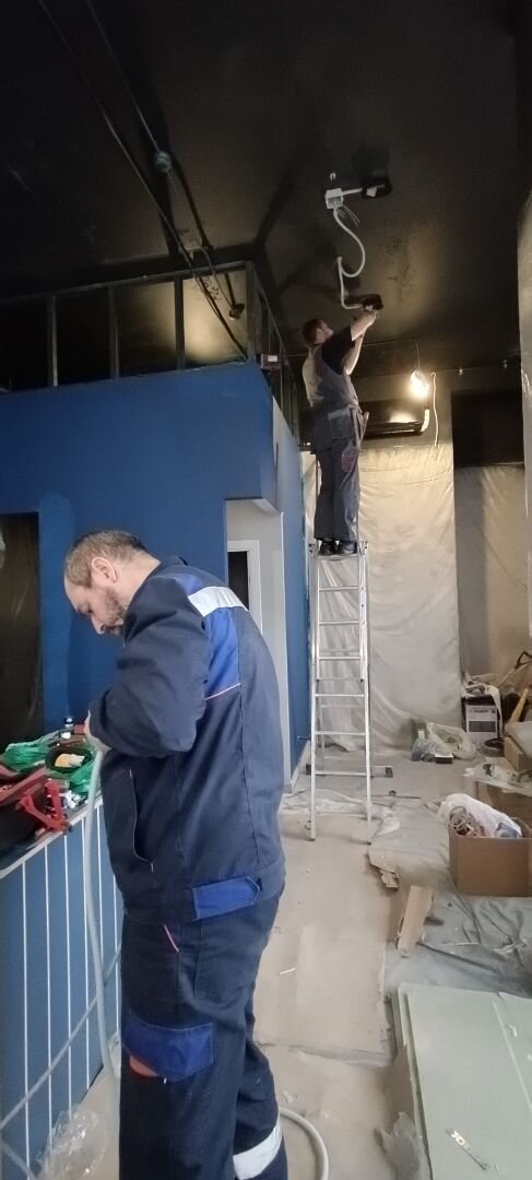 А с бригадой, которую Саша назвал "аналоговыми", мы распрощались 🤷🏻♀️ Почему так? - Функция параллельного выполнения разноформатных задач у них просто отсутствовала как вид. В итоге все процессы растянулись дальше некуда. Так что будем заканчивать своими силами - благо руки из нужного места растут у некоторых (эт я про мужа).😁Лично я собираюсь переквалифицироваться в маляра. Прям как большие и серьезные люди с комплексным подходом установили кондиционер для борьбы с жарой и тепловую завесу для сохранения тепла зимой; развели вентиляцию в санузле, подсобном помещении и вытяжку над будущей конвекционной печью сделали ))