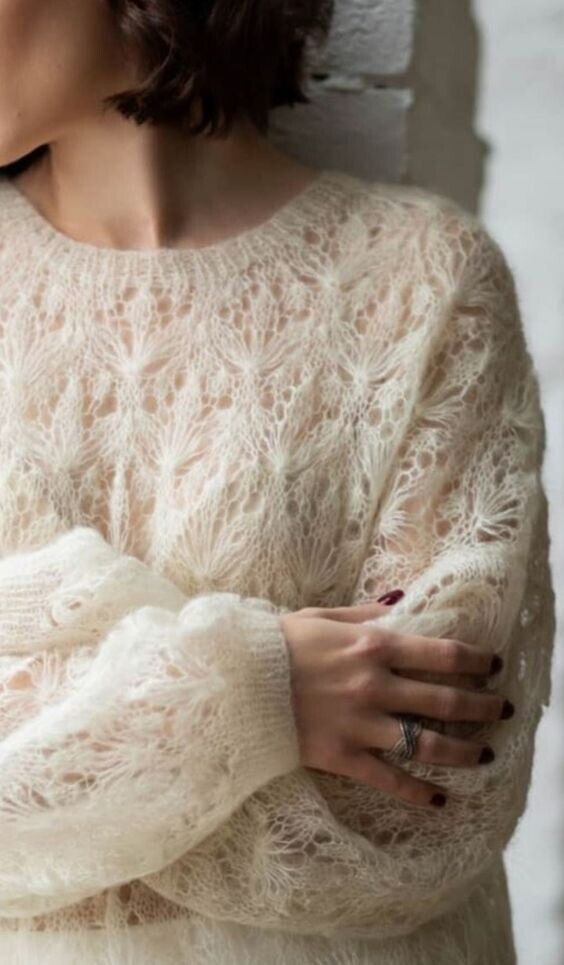 "Весна с капелью раннею, красивой, чуть печальною воздушна и легка. А белые снежиночки, что снегом на тропиночке, бегут весёлым ключиком вдоль берега реки...Они в своей безгрешности остались в сердце нежностью и, канув в неизвестности,незримо далеки..." 🌹🌹🌹 Очень скоро наступит прекрасное время года... Весной хочется расправить крылья, обновиться, очаровать саму себя и всех вокруг! Мягкий женственный ажур, связанный из мохера, подходит для этих целей как нельзя лучше 💗 Нежное облако... Прекрасный джемпер связан узором "Трилистник". Его можно научиться вязать по данному мастер-классу. Невесомый мохеровый жакетик с крупными ажурными элементами также не оставит хозяйку без внимания! В этом узоре вяжутся ВСЕ ряды. ПРИ ПОВОРОТНОМ ВЯЗАНИИ нечетные ряды читаются по схеме справа налево, четные ряды – слева направо. ПРИ КРУГОВОМ ВЯЗАНИИ все ряды читаются справа налево. (Схема дана для кругового вязания. При вязании поворотными рядами пустая клетка: в нечётных рядах вязать лицевой, в чёт