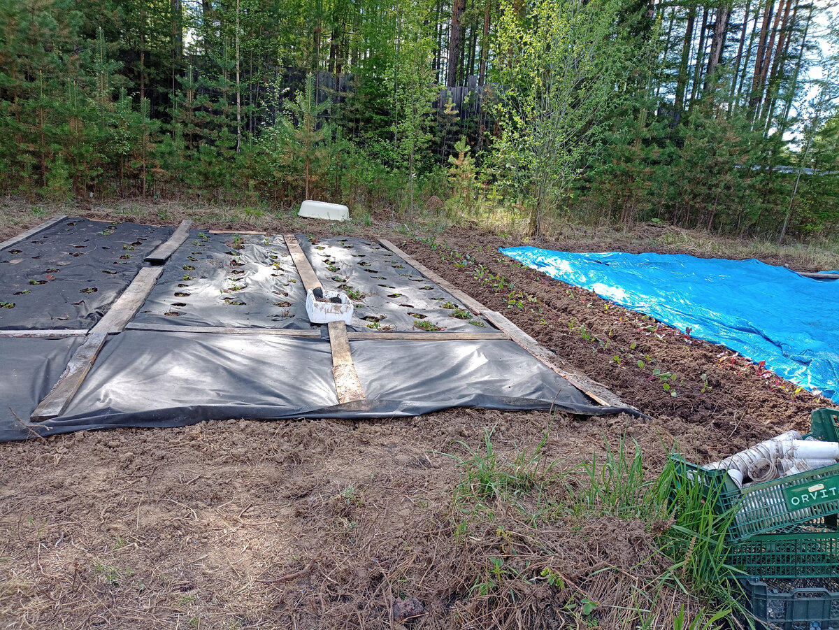 Продолжаю свой рассказ) Тяжеловато конечно разрываться между дачей и сторойкой,но я как-то привыкла.Подумаешь,каких-то 17 км между ними,сел да приехал,куда надо!) В прошлом году меня стукнуло по голове очередной гениальной идеей!!!Надо вспахать целину на участке,где стройка!!!А там чего только не выросло за период нашего бездествия на огороде.Он был не в приоритете,поскольку надо было "строить и не отвлекаться",как завещал великий муж мой) Ну если у Ани стукнуло,тут уж никакие завещания не помогут.Нашлись хорошие парни с мотоплугом,которые распахали мне заросли шиповника,пырея ,осота и прочей гадости на будущей плантации) Хватило места под клубнику,свеклу и ещё "на перспективы".Видите,синим тентом накрыто?Это под помидоры сезона 2023))) А Мурыся вот смеётся над моими планами!Говорит, что я не справлюсь!Наивная))) Всё у меня получится) А если ещё наплачу теплицу на Левом берегу в этом году,то вообще от счастья буду прыгать и плясать) Спасибо вам,что вы со мной♥️♥️♥️