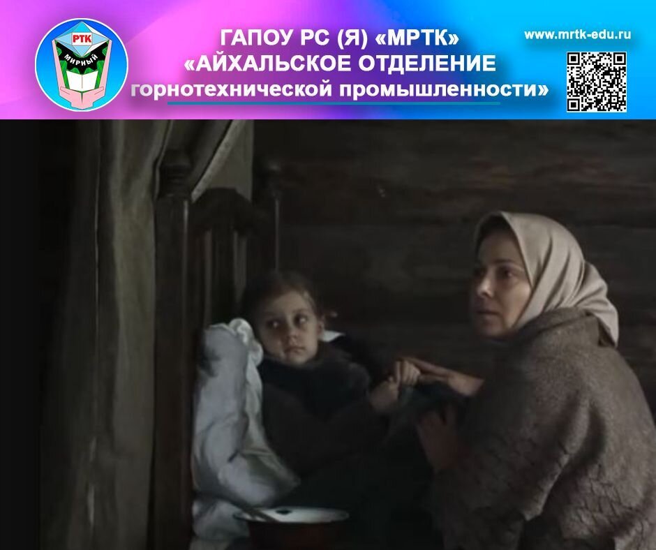 «Разговоры о важном» - «Великий прорыв» в «Айхальском отделении горнотехнической промышленности». 17 января 2023 г. в ГАПОУ РС (Я) «МРТК» «Айхальское отделение горнотехнической промышленности» в дистанционном режиме прошел показ фильма «Африка». Мероприятие проводилось в рамках программы IX молодёжного кинофестиваля «Перерыв на кино», организованного к 80-летию прорыва блокады Ленинграда. Художественная лента длительностью 50 минут описывает события 1943 года, когда на окраине блокадного Ленинграда в опустевшей деревне происходят события, заставляющие глубоко задуматься о вечных ценностях современную молодёжь, мировоззрение которой очень отличается, в виду понятных причин, от воспитания их сверстников, на долю которых выпали испытания страшной и долгой Великой Отечественной войны. Содержание картины вызвало много споров, вопросов, рассуждений… Нина Лихи́на, преподаватель АО ГТП. Пресс-служба ГАПОУ РС (Я) «МРТК» «Айхальское отделение горнотехнической промышленности». #Айхальскоеотделени