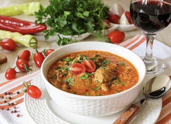 Ароматный наваристый суп харчо хорош для сытного обеда. Популярное грузинское блюдо, нечто среднее между мясным супом и рагу, давно прижилось в русской кухне. Перед ним трудно устоять, особенно если харчо приготовлено по всем правилам. Но для того чтобы насладиться этим блюдом, совсем не обязательно отправляться в кавказский ресторан. Поговорим о том, как правильно готовить вкусный суп харчо в домашних условиях с соблюдением грузинских традиций. Что такое харчо Никто не знает, когда впервые в грузинской кухне появился рецепт харчо. Известно, что когда-то словом «харчо» называли говядину в соусе из грецких орехов и тонких пластинок сушеного сливового пюре тклапи. Чуть позже в харчо стали добавлять рис, и сейчас на Кавказе считается, что настоящий харчо варится из говядины, тклапи, грецких орехов и риса. В летние месяцы сливовое пюре заменяют свежей сливой или соусом ткемали. Допускается добавлять в блюдо и другие продукты, ведь в разных районах Грузии харчо готовят по-св