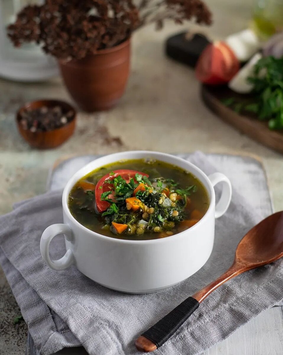 Привет, друзья ! Как ваши дела ? Сегодня я к вам с рецептом лёгкого и вкусного чечевичного супа со шпинатом . Кстати, он подойдёт для людей, которые соблюдают пост или не едят мясо . Вот такой замечательный суп 😍 ИНГРЕДИЕНТЫ : Морковь средняя - 2 штуки, Лук - 2 штуки, Чеснок - 2 зубчика, Имбирь - небольшой кусочек, Подсолнечное или оливковое масло - для жарки, Овощной бульон или вода - 1,5 литра, Шпинат свежий или замороженный - 300 г, Чечевица красная - 150 г, Соль, перец - по вкусу, Помидоры - 2 штуки . ПРИГОТОВЛЕНИЕ : 1) Морковь и лук нарезаем мелким кубиком . Чеснок и имбирь натереть на тёрке . 2) В кастрюле с толстым дном разогреваем масло . Лук, морковь, чеснок и имбирь кладём в кастрюлю и готовим 10 - 12 минут . 3) Затем заливаем овощи подогретым бульоном, варим 5 - 7 минут . 4) Добавляем нарезанный шпинат и чечевицу . Варим ещё около 10 минут . 5) В конце добавляем нарезанные помидоры, приправляем солью и перцем по вкусу, варим до готовности помидо