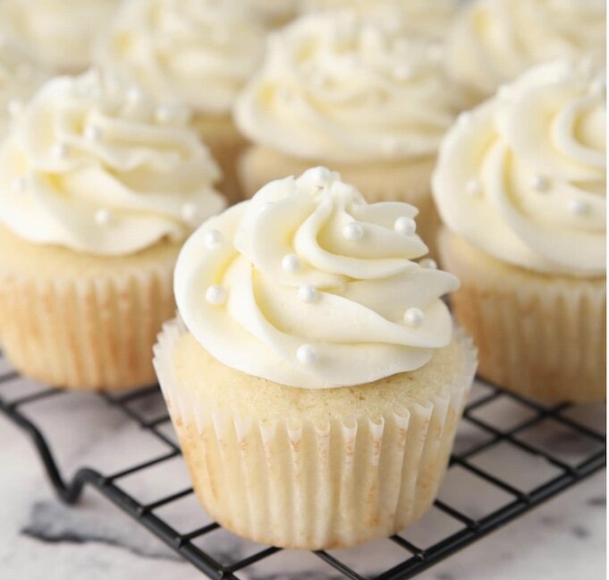 Белые капкейки — прекрасное угощение на день рождения, юбилей или даже свадьбу. Они классические по рецептуре, простые по составу и их легко приготовить дома.