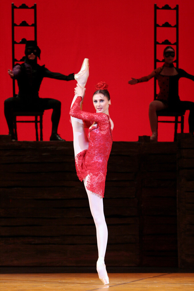 Любой отзыв, рецензия, критика всегда субъективны и напрямую зависят от личного опыта того, кто пишет. Моя история «Кармен» началась в детстве, когда мама привела меня в наш оперный театр. Спектакль произвел на меня столь сильное впечатление, что я бы могла сказать стал роковым. Именно после «Кармен» я загорелась балетом и дерзнула поступить в училище. Помню мы шли с мамой и в руке я несла 3 цветочка (какое счастье , что в моем детстве была возможность дарить цветы артисту прямо после спектакля, на сцене. Теперь ты вынужден передавать букет через служащих, которые подарят цветы за тебя за кулисами….честно сказать это очень отбивает охоту дарить цветы) 3 цветка для трёх действующих лиц – Кармен, Хозе и Тореадора. Балет подчеркивал сценографией и хореографией любовный треугольник, и в сердце глубоко и твердо обосновался образ страстной, волевой, обольстительной, но в месте с тем искренней женщины, которая не захотела променять свою гордыню на уют семейной жизни. К сожалению мечта станц
