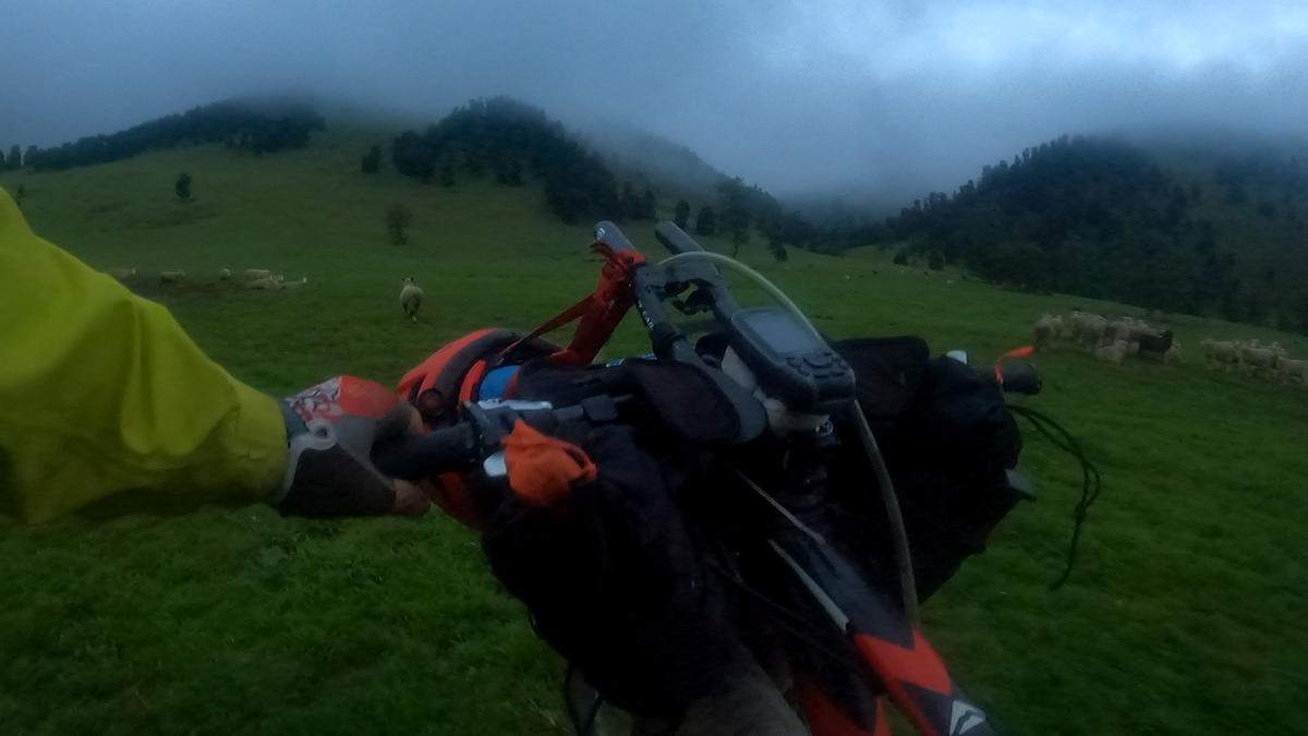 Встал рано. Ботинки за ночь окончательно просохли - посадил подошву на суперклей. Попрощался с Геной. На улице ждал уже привычный мне туман. И овцы.