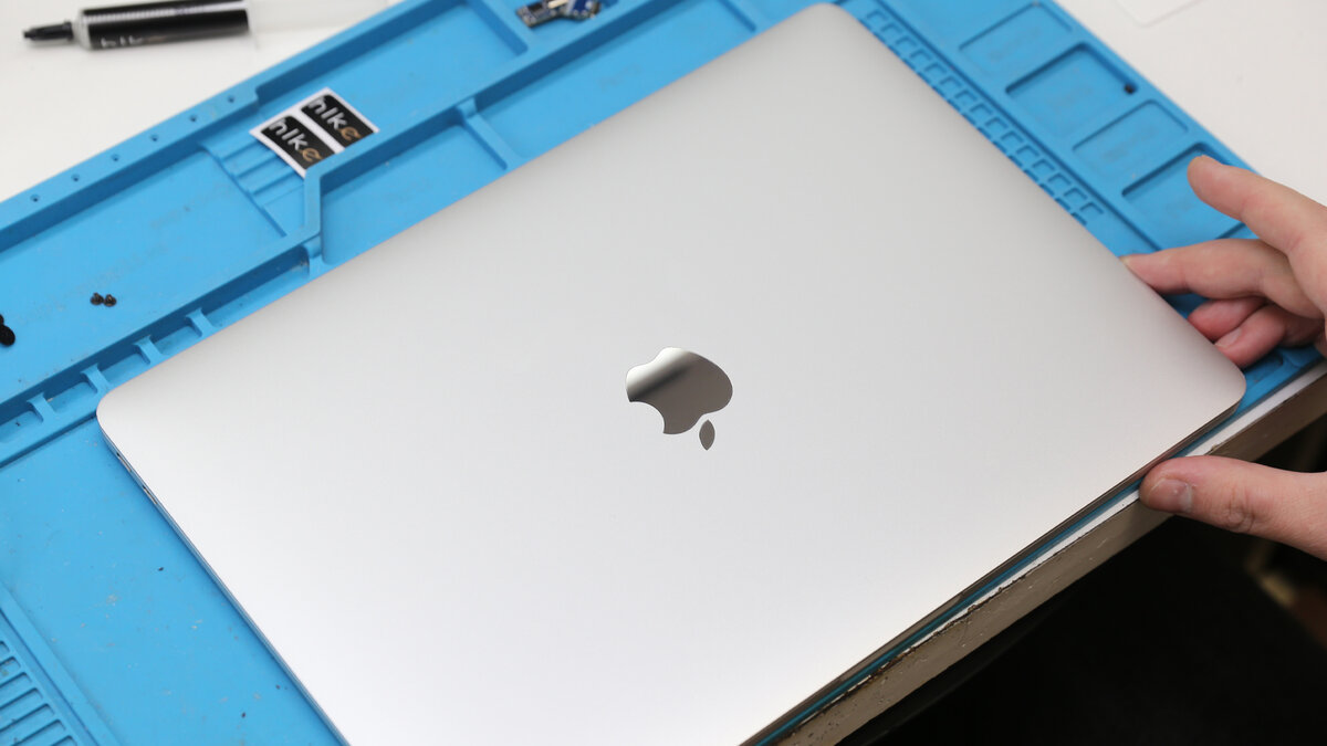 Любая техника требует регулярного обслуживания. Иначе качество работы аппарата станет сильно хуже, а в некоторых случаях отсутствие обслуживания приведет к неисправностям. Поэтому так важно не забывать об этом. Клиент обратился в наш сервисный центр по ремонту Apple с просьбой заменить термопасту. Его Macbook Pro 13 начал сильно нагреваться во время работы. Замена термопасты в Macbook Pro 13 Термопаста – это теплопроводящее вещество, задача которого усилить передачу тепла от нагревающегося компонента (видеокарта, процессор) к радиатору. Через определенный промежуток времени термопаста раскладывается на фракции и высыхает. Из-за этого в промежуткемежду компонентом и системой охлаждения образуется воздушная подушка, которая мешает выводить тепло. В итоге аппарат начинает сильно нагреваться. Не заметить это изменение сложно. В самых критичных случаях ноутбук может выключаться от перегрева. Исправить ситуацию поможет замена термопасты. Инженер откручивает винты по периметру нижней крышки М