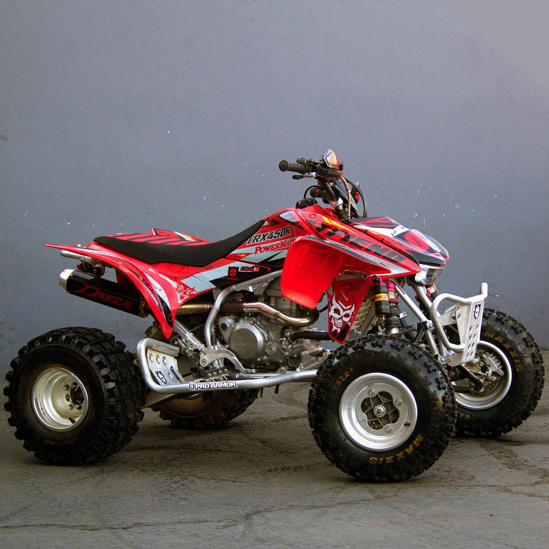 Там нет ни у кого сомнений, что квадроцикл Honda имеет огромное количество лояльных фанатов по всему миру. Модель TRX 450 была разработана как раз для них (для таких фанатов). Он очень похож на своего культового предшественника модель Honda 250R. А почему бы и нет скажут многие из вас и будут правы. Она, эта модель, разделила элементы дизайна со своим младшим братом и даже в стоковом варианте была построена вокруг невероятно надежной платформы. После начала производства которое началось в 2004 году, эта техника стала хитом среди поклонников данных гонок и остается одним из самых популярных квадроциклов на любой гоночной трассе по всему миру.