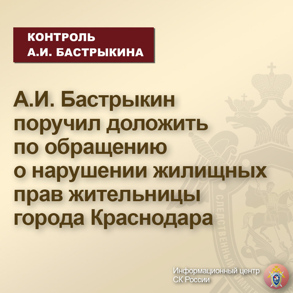 К Председателю СК России А.И. Бастрыкину через телеграм-канал Информационного центра обратилась жительница города Краснодара, сообщив о нарушении ее прав как участницы долевого строительства и на получение жилищного сертификата.