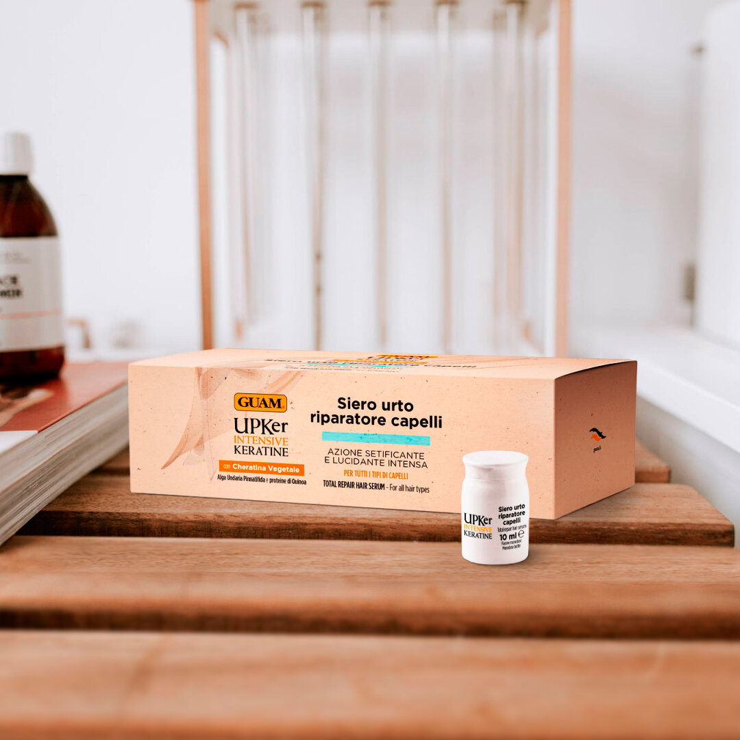 👍UPKER INTENSIVE KERATINE представляет интенсивное средство для кератинового восстановления и разглаживания волос с выраженным WOW-эффектом. СЫВОРОТКА ВОССТАНАВЛИВАЮЩАЯ С КЕРАТИНОМ ДЛЯ ГЛАДКОСТИ ВОЛОС - это целительный эликсир с растительным нано-кератином, экстрактом водоросли Ундария и протеинами киноа для стимулирующей реанимации повреждённых, ломких, пористых и вьющихся волос с эффектом кератинового восстановления и разглаживания. Двойное «заполняющее» воздействие нано-кератина изнутри и снаружи на повреждённые участки волоса позволяет укрепить, уплотнить и разгладить его поверхность. 😍 После процедуры волосы гладкие, мягкие, послушные, легко расчёсываются и укладываются, не «пушатся». Эликсир не содержит масел и не утяжеляет волосы. 👉 Сыворотка восстанавливающая с кератином для гладкости волос имеет накопительный эффект и требует курсового применения: Интенсивный курс – 1 месяц по 2 фл./нед. В упаковке 8 флаконов по 10 мл, этого достаточно для проведения интенсивного курса. Доп