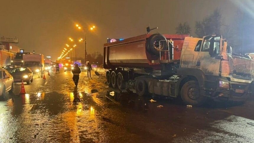 Авария произошла около 22:00 часов 18 января. Фото: Telegram / r_chp; 5-tv.ru Не менее страшная авария произошла в Москве на МКАДе. Водитель такси при перестроении задел грузовик, отчего тот потерял управление. Многотонная машина сначала протаранила еще одну легковушку, которая оказалась у нее на пути, а после врезалась в бетонный отбойник и столб освещения. Удар был такой силы, что от кабины грузовика мало что осталось, водитель погиб на месте. Еще один человек пострадал, а движение по МКАД в обоих направлениях было сильно затруднено несколько часов. И еще одна авария с участием большегруза произошла в подмосковных Люберцах. Легковушка столкнулась с грузовиком и загорелась.