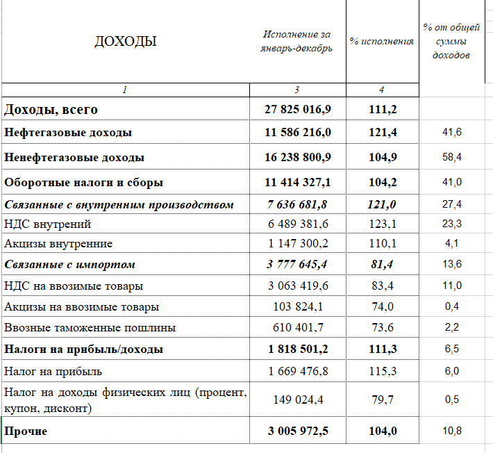 41,6% — нефтегаз, 34,3% — НДС. Итого уже 3/4 бюджета.
