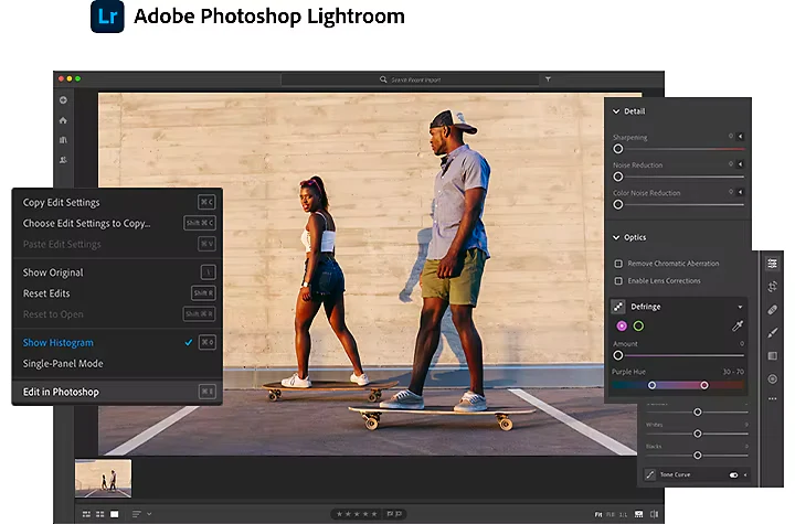 Фотосъемка товаров начинается под камерой, но завершается в процессе постпродакшна. Все слышали об Adobe Photoshop, но он не является универсальным средством обработки изображений товаров. Для некоторых видов работ Adobe Photoshop излишне сложен: использовать Photoshop для цветокоррекции изображений со съемок — все равно что программировать суперкомпьютер для разделения чека в ресторане, когда калькулятор вашего телефона (Lightroom) уже под рукой. Adobe Lightroom — это программное обеспечение для редактирования фотографий для фотографов DIY (сделай сам), которые не жалеют бюджета. Его можно использовать как для оптимизации рабочего процесса во время съемки, так и для массового редактирования изображений после нее.