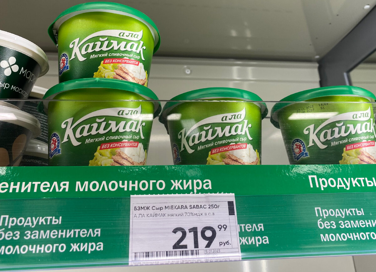 Сегодня мы отправимся с вами на поиски сыра каймак в местные магазины. Заглянем в пятерочку, ашан, перекресток и в один магазин молочной продукции. Итак заходим в ашан и видим 142р за 150грамм Да, на пару бутербродов хватит, вполне себе вариант на один перекус Идем дальше вашему вниманию по скидке в перекрестке (что удивительно) и по стандартной цене в пятерочке Можно брать, по скидке, цена вполне себе за объем 250грамм, но у нас с вами есть один «секретный» магазин, это сеть белорусских продуктов находится в московской области и еще в паре городов - «сыр да масло». Там данный каймак можно приобрести по цене 169₽ за 250гр, это стандартная цена без скидки. Со скидкой бывает и за 149₽ можно купить. Поэтому если вы поедатель данного продукта и вам посчастливилось жить в ореоле обитания данной сети, то вы знаете, куда идти. Каймак можно характеризовать как очень вкусная сметана, сливки, кто-то называет его мягким сыром, все это неважно, главное что нужно знать это очень вкусн
