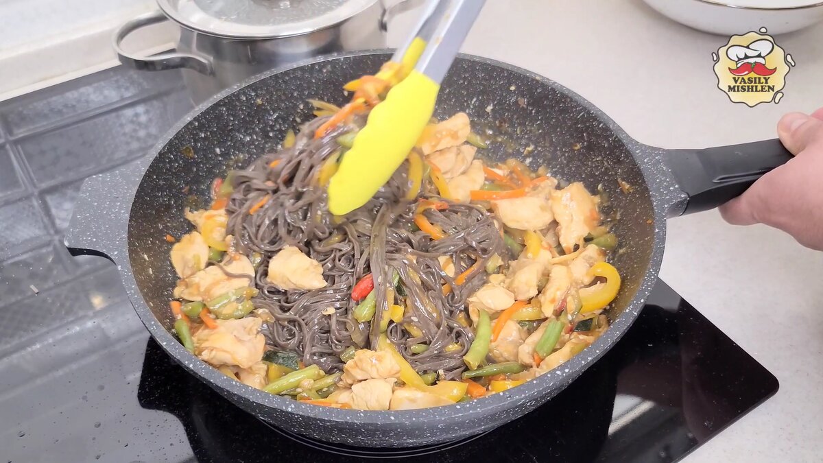 Одно из любимых блюд в нашей семье: гречневая лапша в азиатском соусе