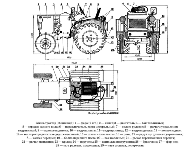 - двигатель минитрактора должен быть расположен под водительским сиденьем;