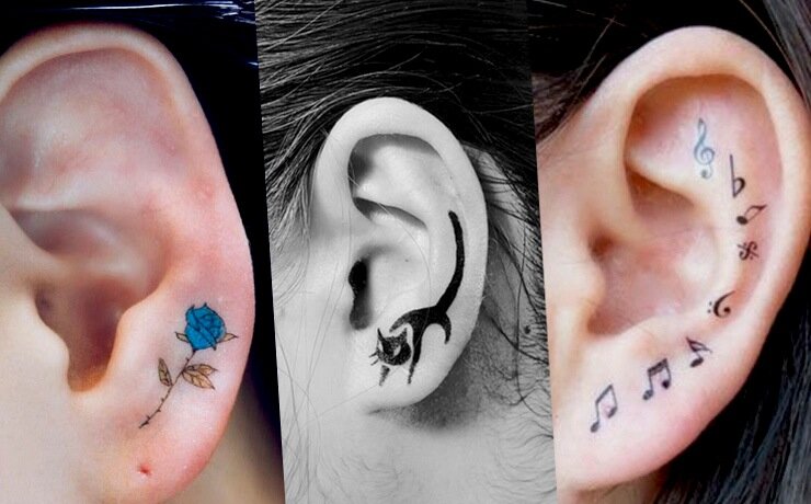 Ушные татуировки можно делать на внешней части ушной раковины, за ухом, внутри или на мочке. При этом, важно знать, что ухо довольно специфическое место, так как имеет ограниченную площадь для рисунка. Поэтому, чаще всего здесь используют небольшие надписи, абстракции, разные линии и круги, маленькие цветы, сердца или другую минималистическую графику.